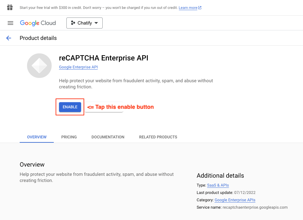 - Now start verification of reCAPTCHA Enterprise to follow those steps
