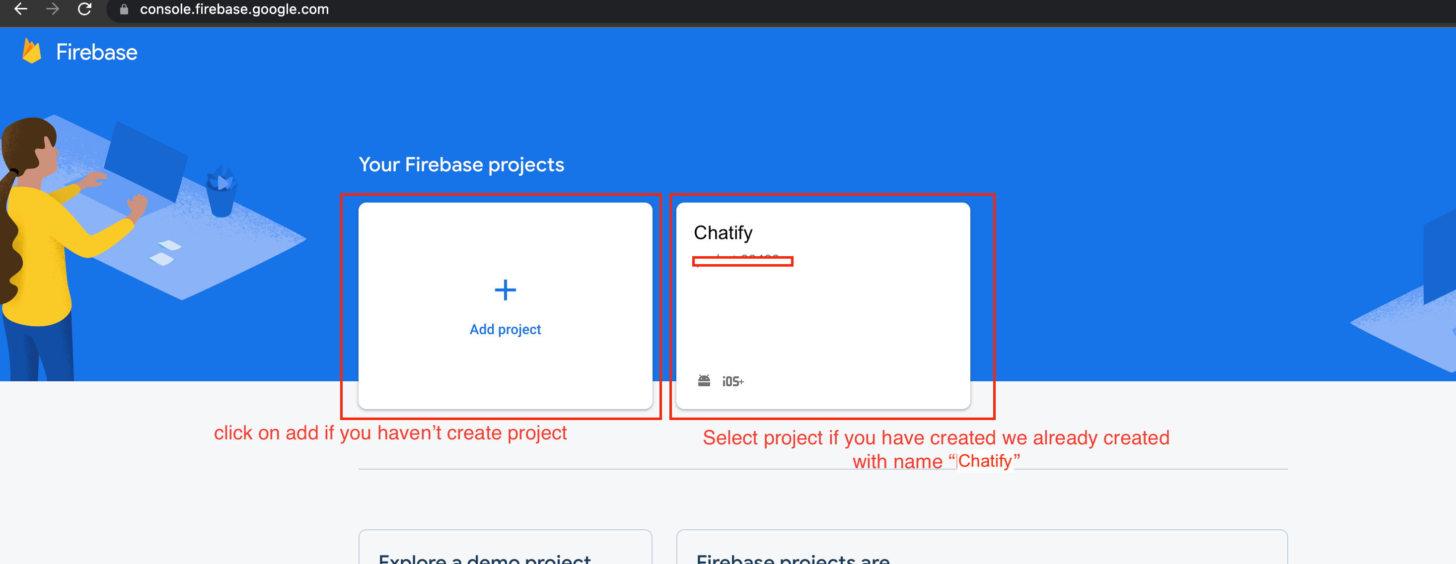 If you haven’t Firebase Project Account ? Click here for create project see the steps show in Firebase Setup.