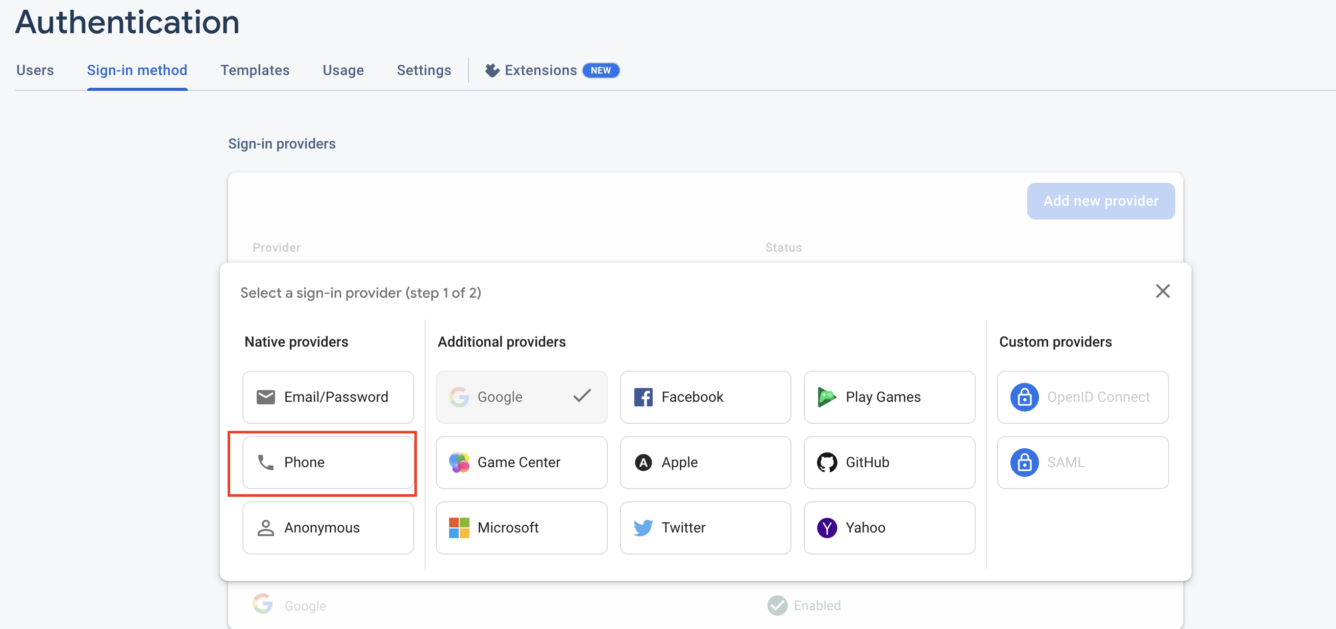 - Now click on Add New Provider button and click on Phone for add