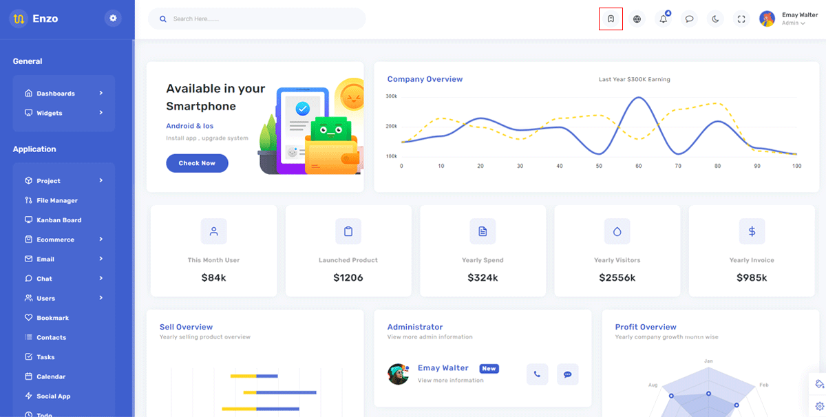 To keep things professional you can add integrate the email application with this theme, to share the important information with your colleagues. We have provided a design for the email application, you can use it and build a fully functional e-mail application.