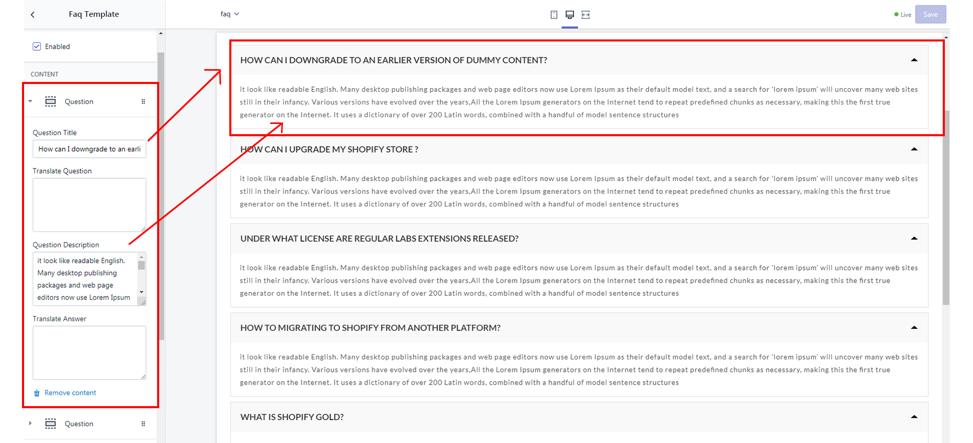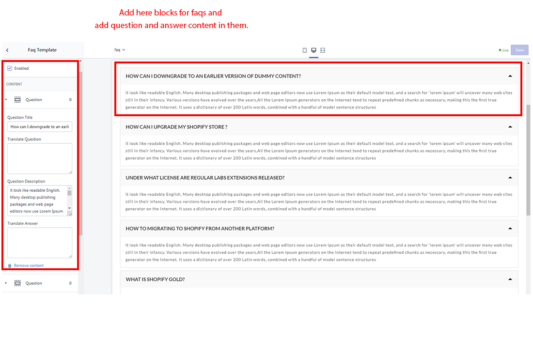 | page.faq | Template with page faq configured by blocks for faq questions and answer. | Multiple |