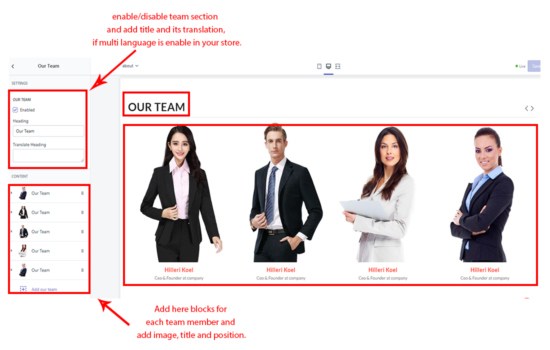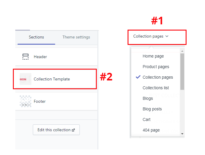 Article Settings: Customize > Shopify menu dropdown > Blog Post > Edit section