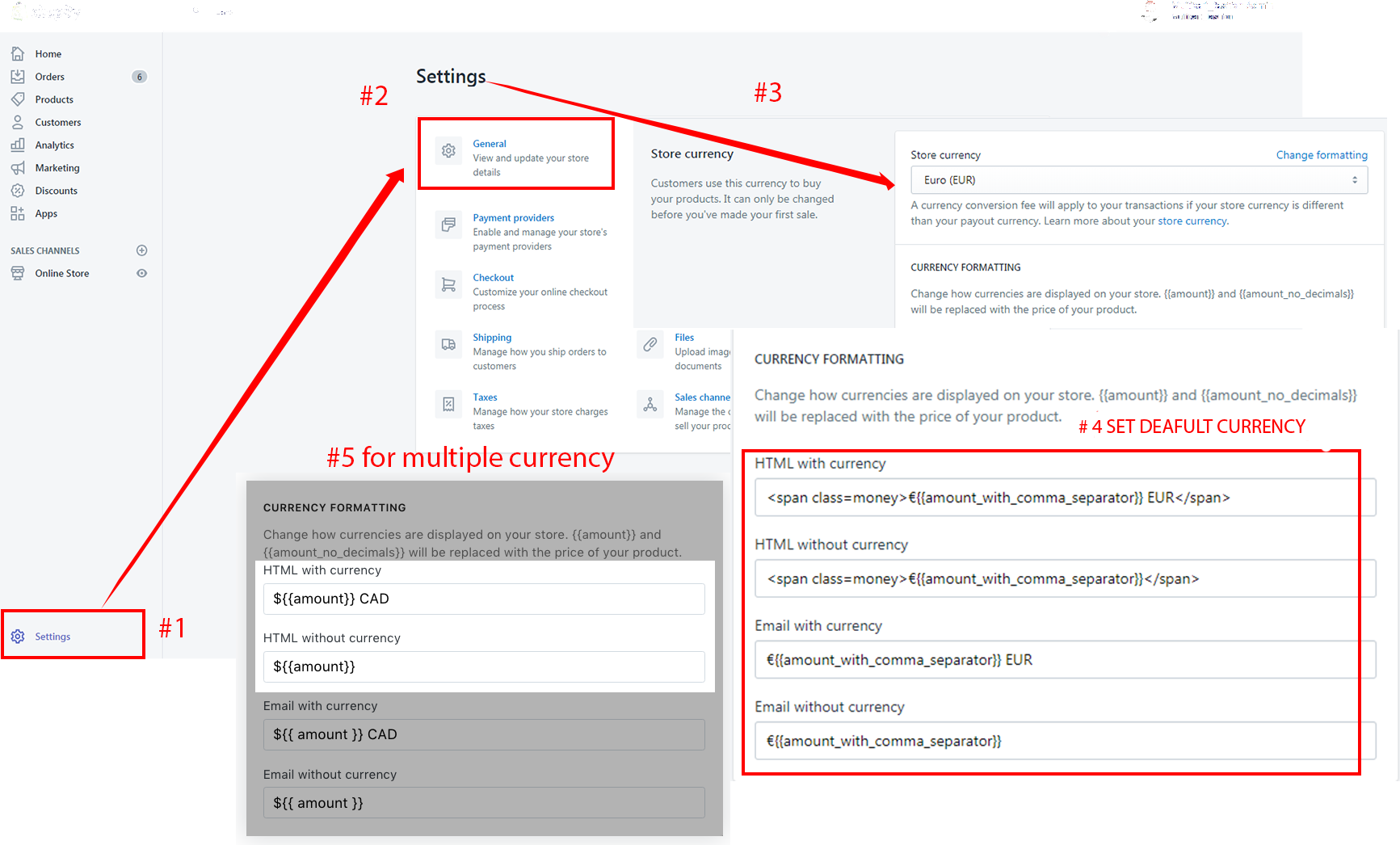Currency block , please select default currency and save itCurrency block, please select change formatting.Currency formatting.