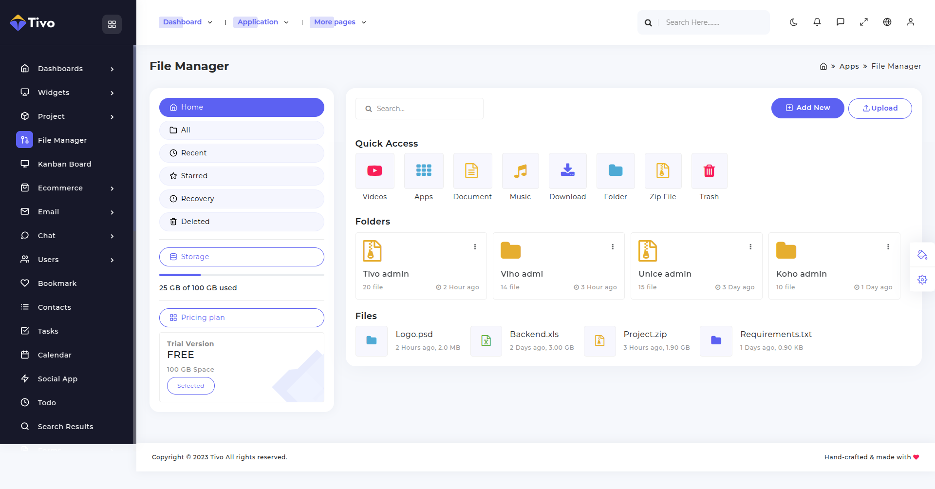 Another application provided with in this theme is chat application. Here we have provided design to create your own chat application. We have kept in mind all basic necessities of the chat application and have created design according to it. You can integrate this design with your backend and make this application fully functional.