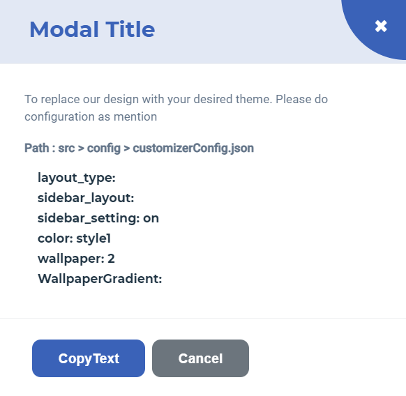 Now to change your project according to configuration which you have set you just need click on Configuration button and copy that config as displyed in below image and paste in layout.json in