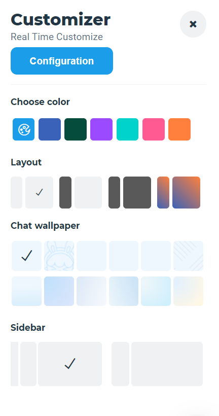 Now to customize theme you can select Color, Layout, Chat Wallpaper, Sidebar of your own choice.