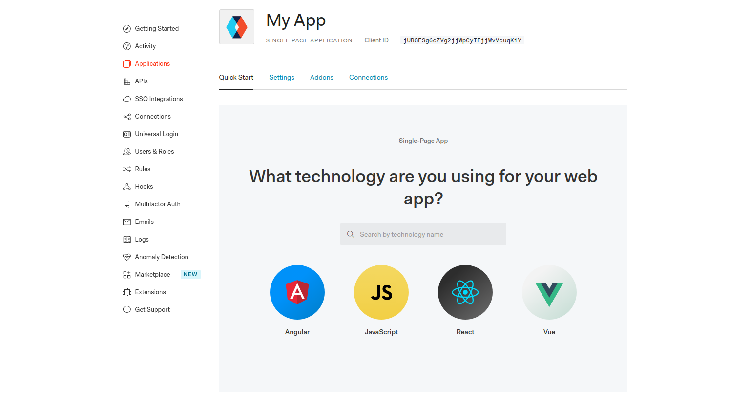You can connect any application (written in any language or on any stack) to Auth0 and define the identity providers you want to use (how you want your users to log in). Based on your app's technology, choose one of our SDKs (or call our API), and hook it up to your app. Now each time a user tries to authenticate, Auth0 will verify their identity and send the required information back to your app.