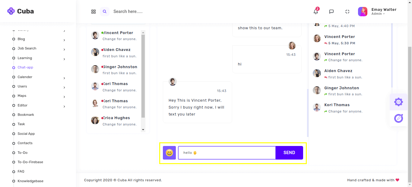 In Chat application we provide complete chat designing with basic feature like chat with a people.