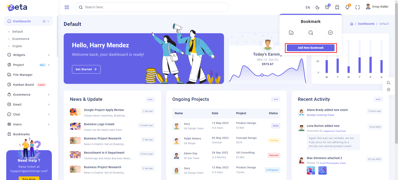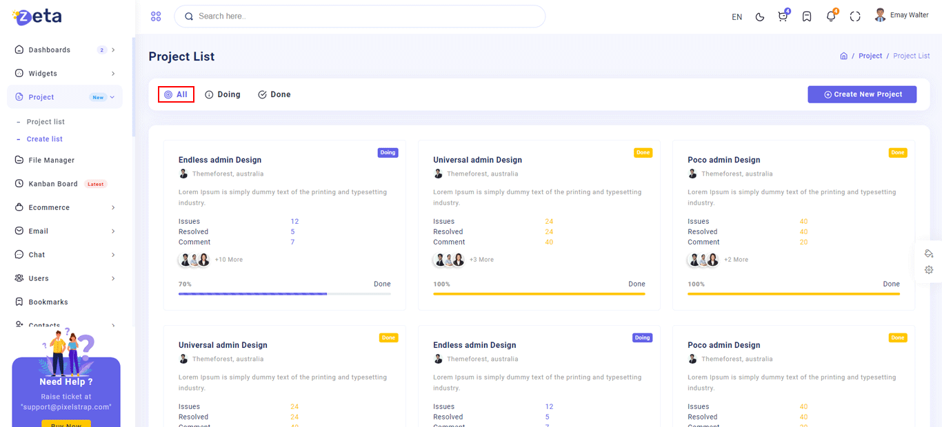 You Can Create New Project and then list of project to manage doing and done project
