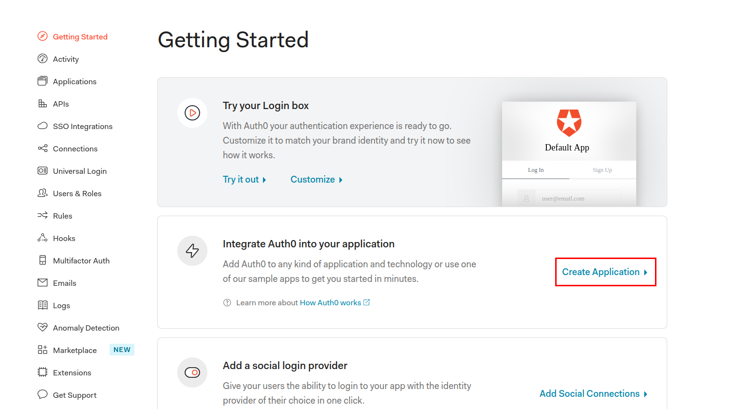 2. Now Go to second option Integrate Auth0 into your application and click on Create Application